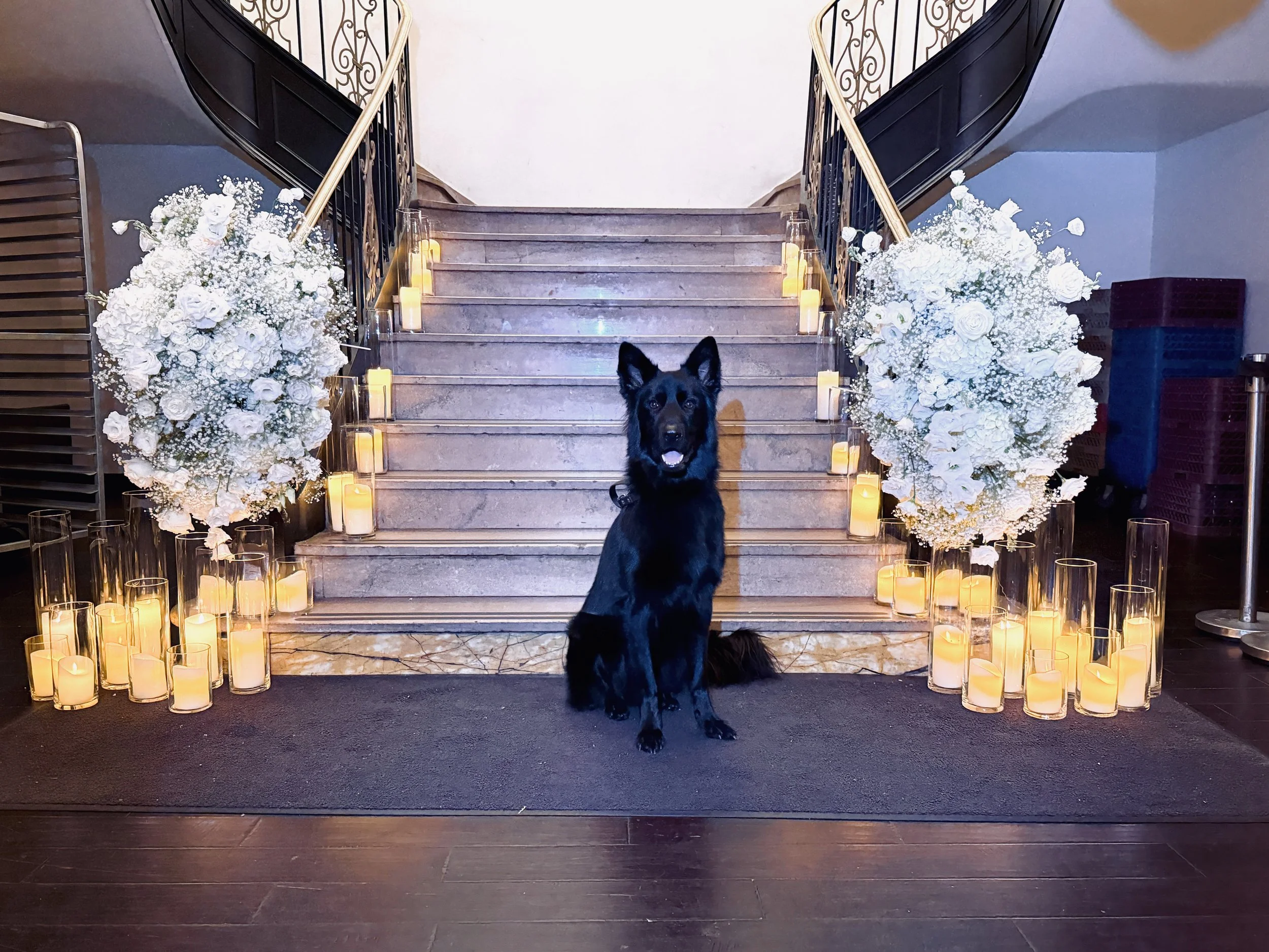 Ceremony & Photo Assistance: Our attendants guide your pet down the aisle, manage them during the ceremony, and assist with posing during photo sessions to capture those picture-perfect moments.